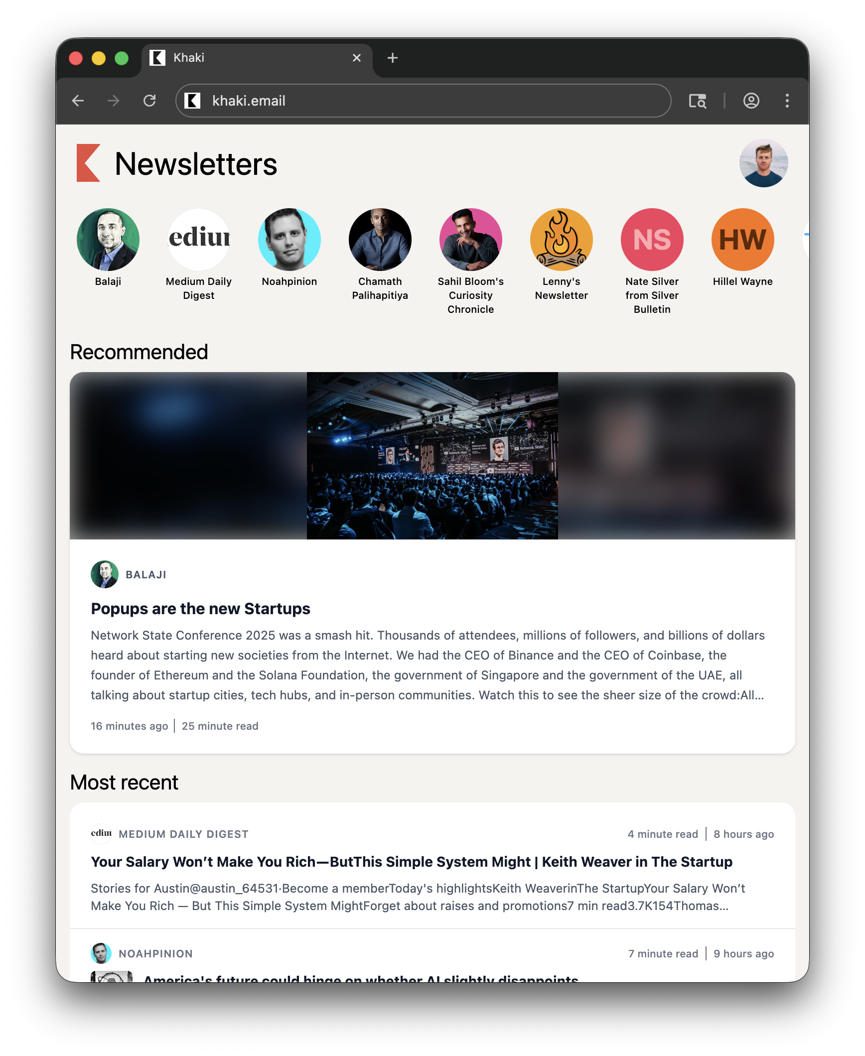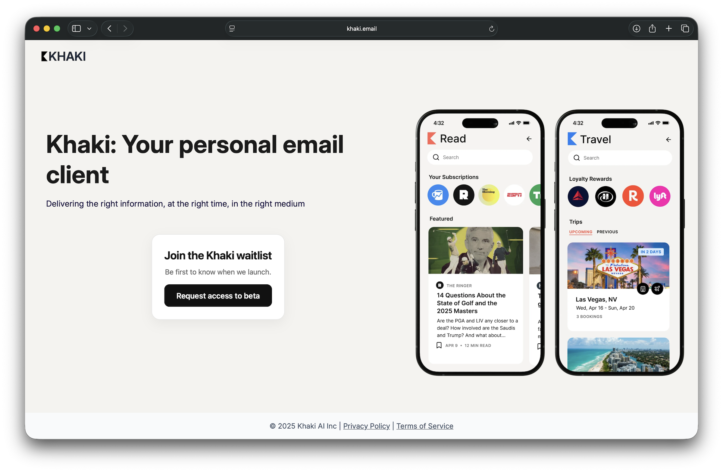 Who are we? Khaki is a consumer email product that extracts the important info from your inbox and crafts custom pages just for you.