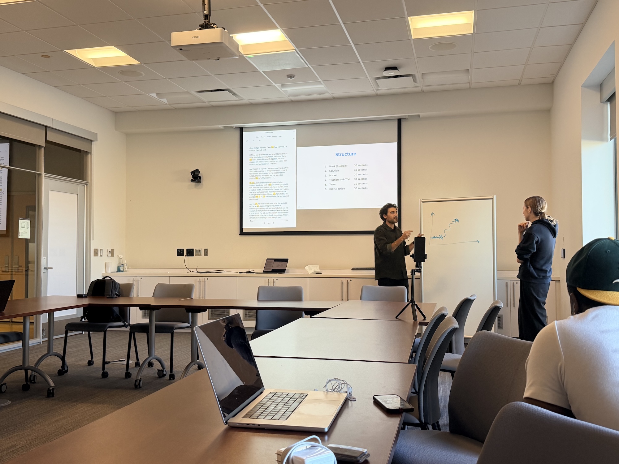 The workshop was ran by a Techstars alum, Nico, that created a product, Speeko, that listens to your presentation and gives specific feedback on how to improve. We each had to get up and give a 3-minute pitch, and then hear feedback from the app as well as the other founders. I had fun.